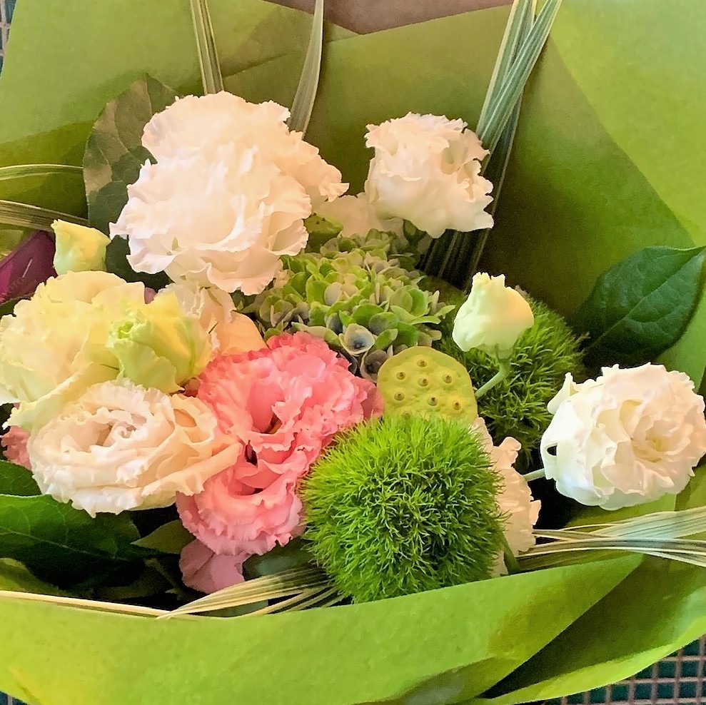 その時期に合わせていちばん状態の良いお花でお作りいたします。