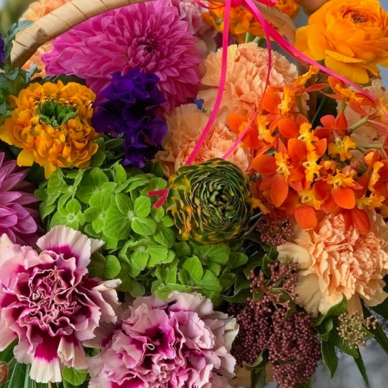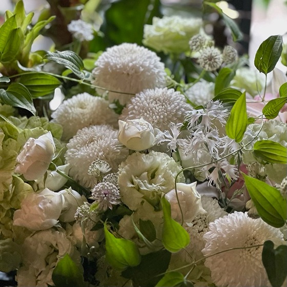 四季折々の花の中から、その時期に最も美しく、生命力あふれる一輪を見極めること。それが私たちの誇りです。京都や大阪の花き市場で、産地や生産者にまでこだわり選び抜かれた花を仕入れています。鮮度と品質を守るため、仕入れから制作まで一貫して丁寧に行い、上質な花々を心を込めてお届けいたします。