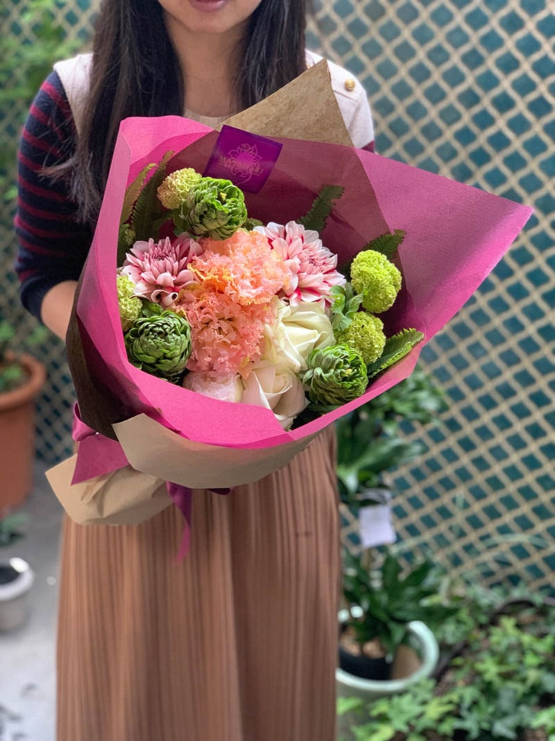 その時期に合わせていちばん状態の良いお花でお作りいたします。