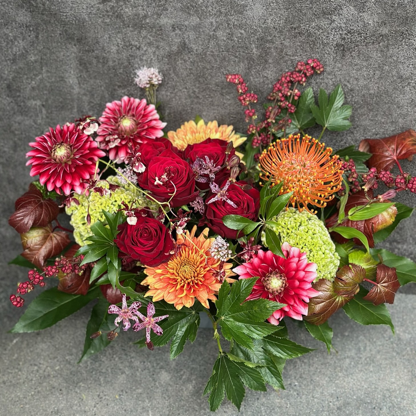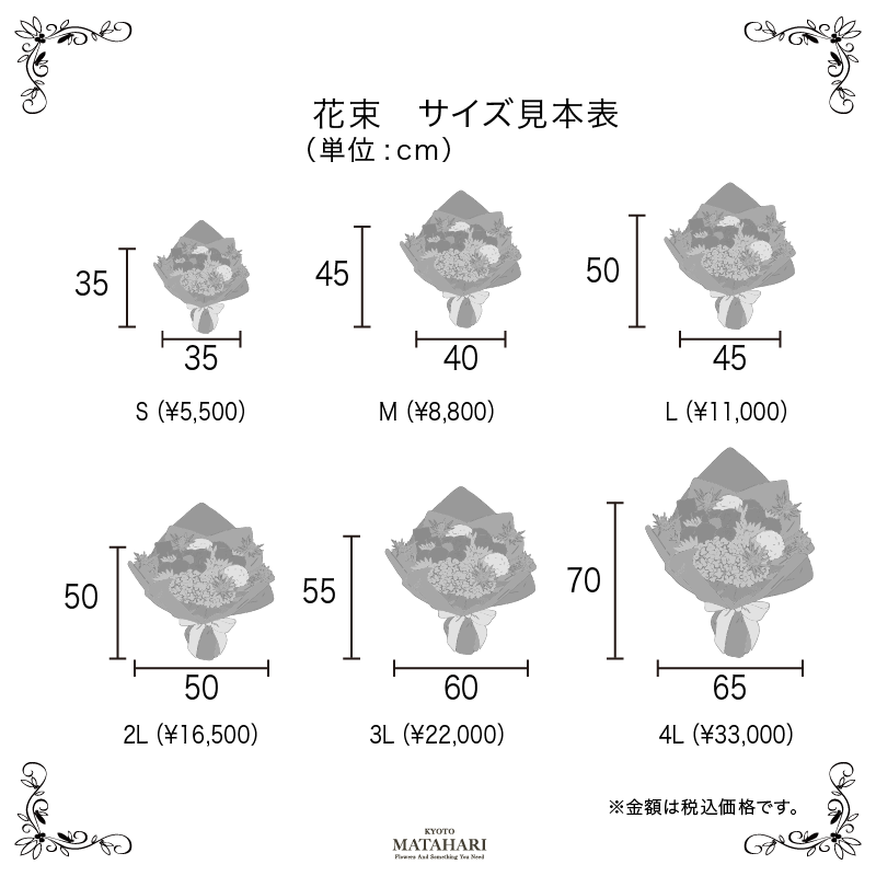 その時期に合わせていちばん状態の良いお花でお作りいたします。