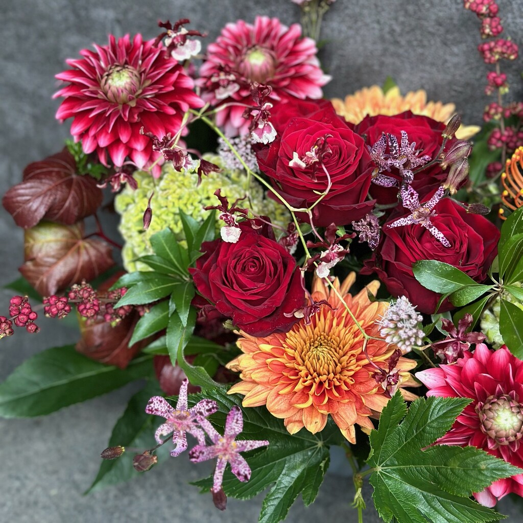 四季折々の花の中から、その時期に最も美しく、生命力あふれる一輪を見極めること。それが私たちの誇りです。京都や大阪の花き市場で、産地や生産者にまでこだわり選び抜かれた花を仕入れています。鮮度と品質を守るため、仕入れから制作まで一貫して丁寧に行い、上質な花々を心を込めてお届けいたします。